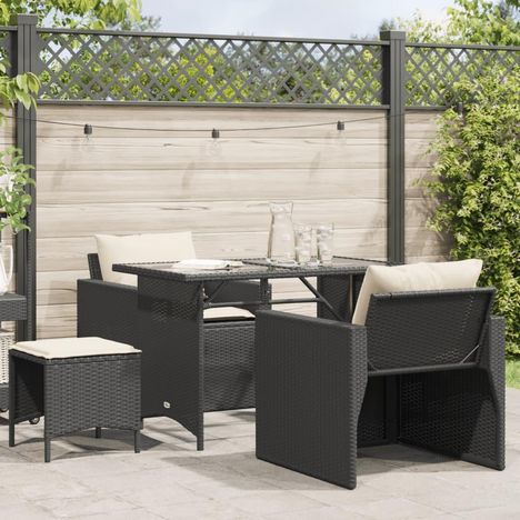 Salon de jardin 4 pcs avec coussins noir resine tressee