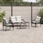 Salon de jardin 4 pcs avec coussins noir resine tressee