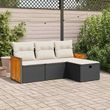 Salon de jardin 4 pcs avec coussins noir resine tressee