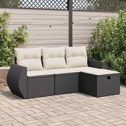 Salon de jardin 4 pcs avec coussins noir resine tressee