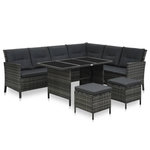 Notre ensemble de salon en rotin elegant et tres confortable deviendra le point central de votre jardin ou patio. Livre avec une table de salle a manger et des coussins et des oreillers doux, cet ensemble de canape de jardin est ideal pour les repas en plein air ou simplement pour vous detendre et profiter du beau temps.