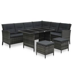 Salon de jardin 4 pcs avec coussins resine tressee gris