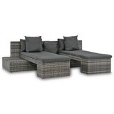 Cet ensemble de mobilier en resine tressee se compose de 2 canapes, de 2 chaises longues, de 5 oreillers et de 2 coussins de siege, offrant un coin salon magnifique pour profiter de moments privilegies avec vos amis et votre famille dans une ambiance detendue. L'ensemble de mobilier peut etre assemble de differentes manieres avec les chaises longues mobiles.