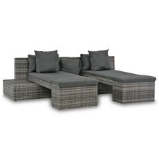Salon de jardin 4 pcs avec coussins Resine tressee Gris