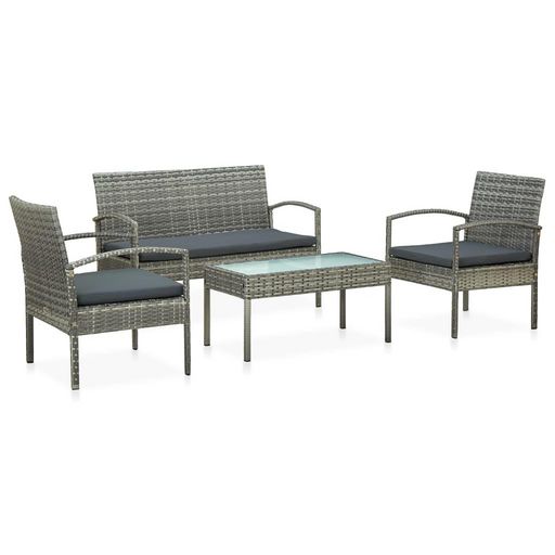 Salon de jardin 4 pcs avec coussins resine tressee gris