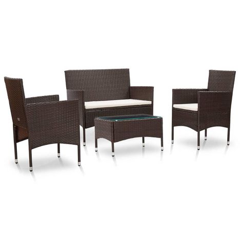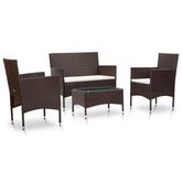Salon de jardin 4 pcs avec coussins Resine tressee Marron
