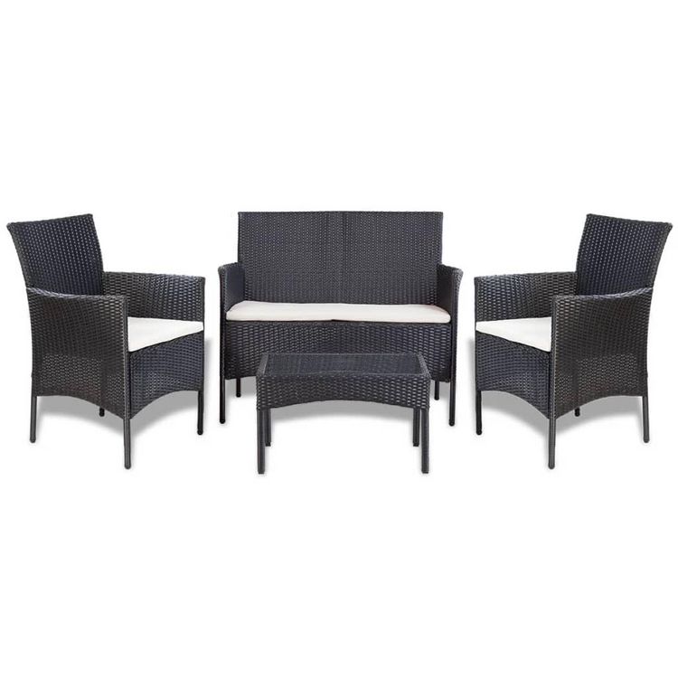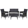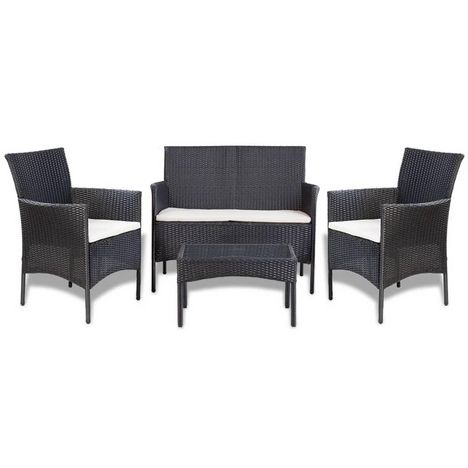 Salon de jardin 4 pcs avec coussins Resine tressee Noir