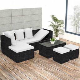 La livraison comprend un canape d'angle, une table basse, deux poufs, quatre oreillers et quatre coussins. Remarque: nous vous recommandons de couvrir l'ensemble pendant la pluie, la neige et le gel.