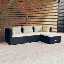 Salon de jardin 4 pcs avec coussins Resine tressee Noir