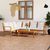 Dote d'un cadre en bois d'acacia massif, l'ensemble de canapes est solide, robuste et durable, et sa finition a l'huile rend l'ensemble de canapes adapte a une utilisation a l'exterieur. Une table basse au design unique a lattes est egalement incluse. Vous pouvez mettre quelques collations, boissons, tasses a the, livre, etc, sur la table basse et garder tous les essentiels a portee de main. Cet ensemble est livre avec des coussins d'assise et de dossier rembourres tres confortables. Les housses en polyester a faible entretien peuvent egalement etre retirees et lavees. De plus, grace a sa conception modulaire, toutes les pieces peuvent etre disposees et personnalisees selon vos besoins.