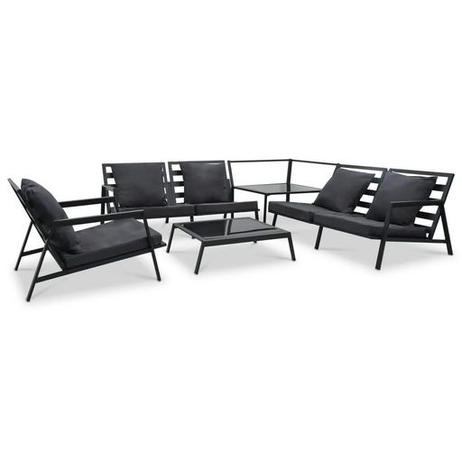 Cet ensemble de canapes en aluminium allie style et fonctionnalite et est destine a etre le point de mire de votre jardin ou terrasse. L'ensemble de salon est conçu pour une utilisation durable et assure une grande resistance, grace au cadre en aluminium enduit de poudre. Les coussins rembourres d'a
