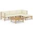 Salon de jardin 5 pcs avec coussins blanc creme bambou