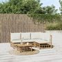 Salon de jardin 5 pcs avec coussins blanc creme bambou