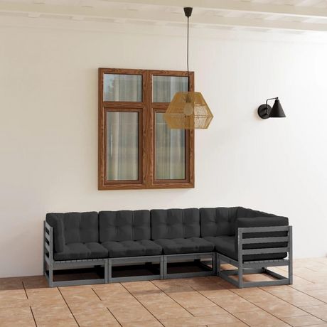 Salon de jardin 5 pcs avec coussins Bois de pin massif