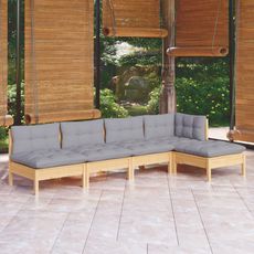 Salon de jardin 5 pcs avec coussins gris bois de pin