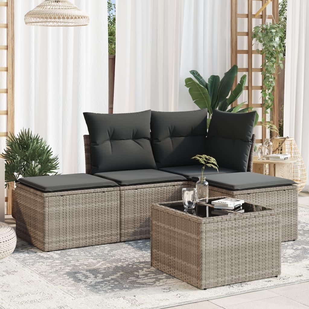 Salon de jardin 5 pcs avec coussins gris clair resine tressee