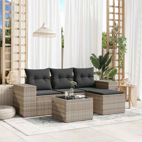 Salon de jardin 5 pcs avec coussins gris clair resine tressee