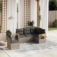 Salon de jardin 5 pcs avec coussins gris resine tressee
