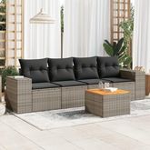 Salon de jardin 5 pcs avec coussins gris resine tressee