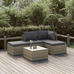 Salon de jardin 5 pcs avec coussins Gris Resine tressee