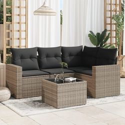 Salon de jardin 5 pcs avec coussins gris resine tressee