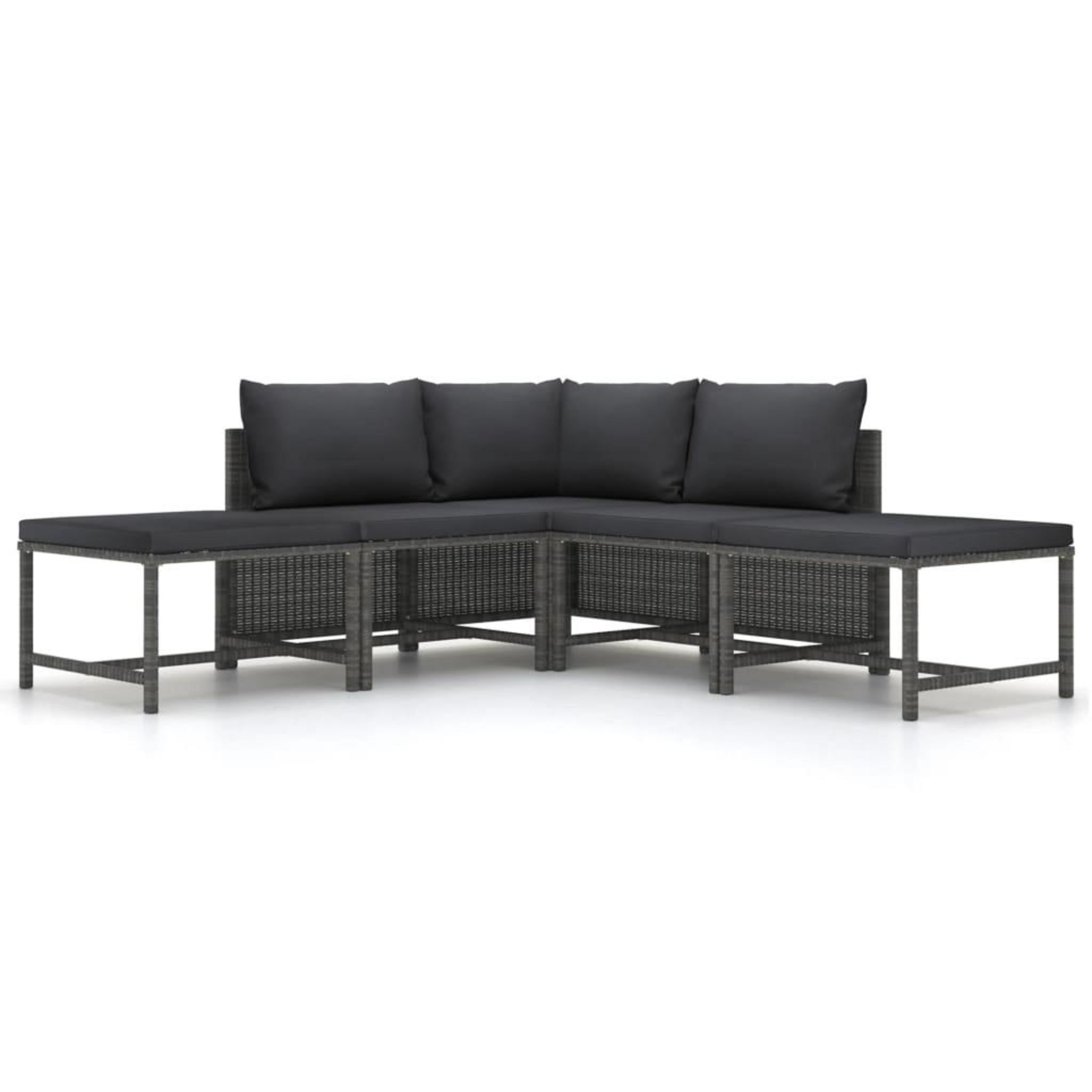 Salon de jardin 5 pcs avec coussins Gris Resine tressee