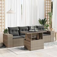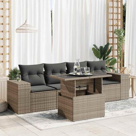 Salon de jardin 5 pcs avec coussins gris resine tressee