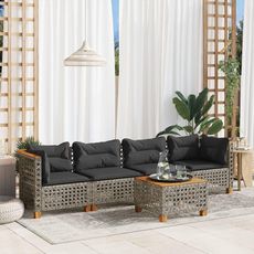 Salon de jardin 5 pcs avec coussins gris resine tressee