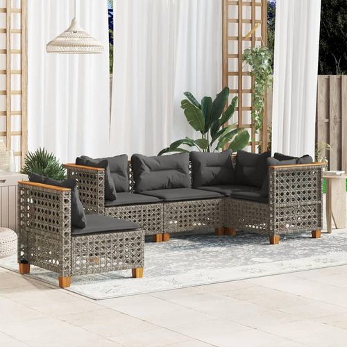 Salon de jardin 5 pcs avec coussins gris resine tressee