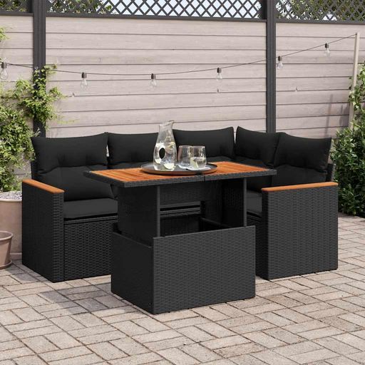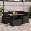 Salon de jardin 5 pcs avec coussins noir resine tressee acacia