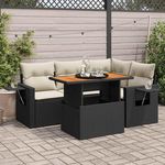 Salon de jardin 5 pcs avec coussins noir resine tressee