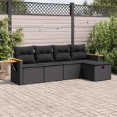 Salon de jardin 5 pcs avec coussins noir resine tressee