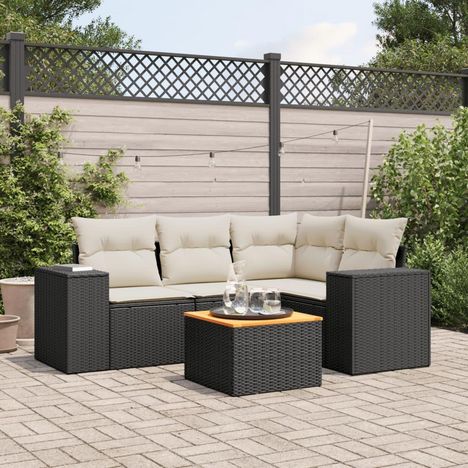 Salon de jardin 5 pcs avec coussins noir resine tressee
