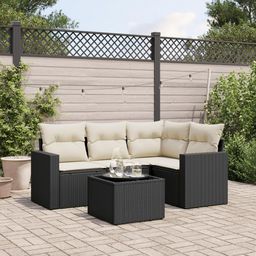 Salon de jardin 5 pcs avec coussins noir resine tressee
