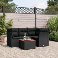 Salon de jardin 5 pcs avec coussins noir resine tressee
