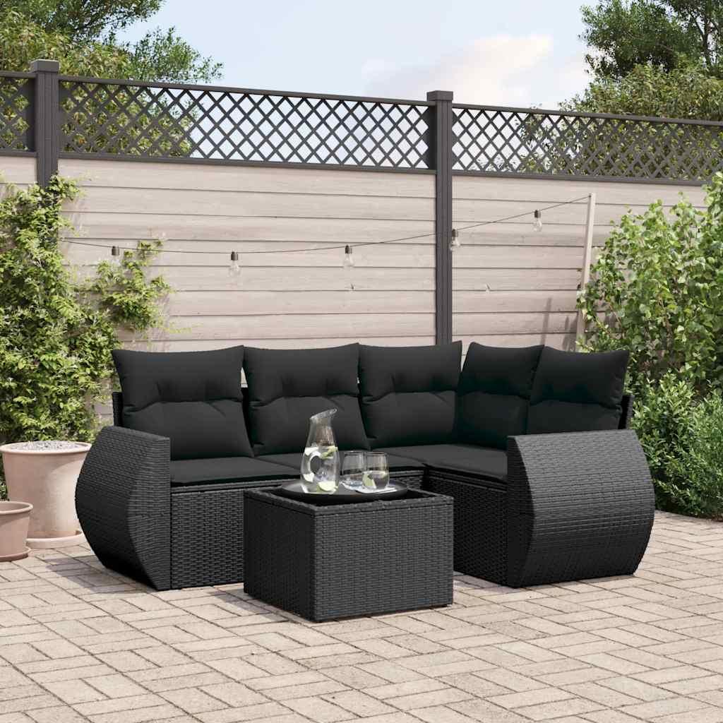 Salon de jardin 5 pcs avec coussins noir resine tressee