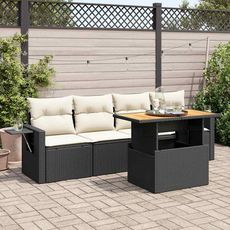 Salon de jardin 5 pcs avec coussins noir resine tressee