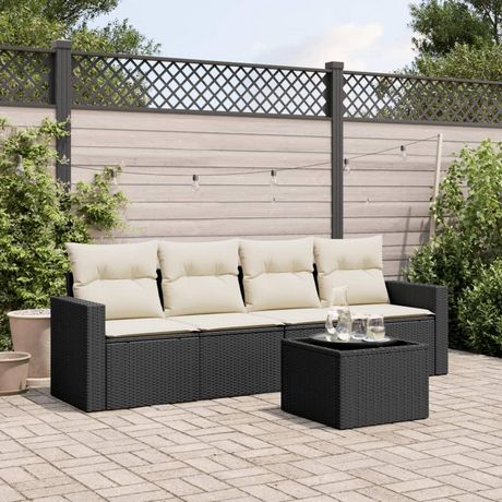 Salon de jardin 5 pcs avec coussins noir resine tressee