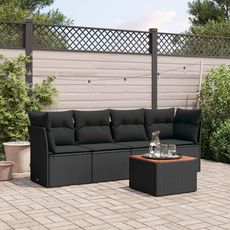 Salon de jardin 5 pcs avec coussins noir resine tressee