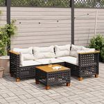 Salon de jardin 5 pcs avec coussins noir resine tressee