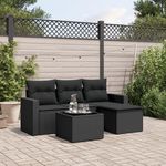 Salon de jardin 5 pcs avec coussins noir resine tressee