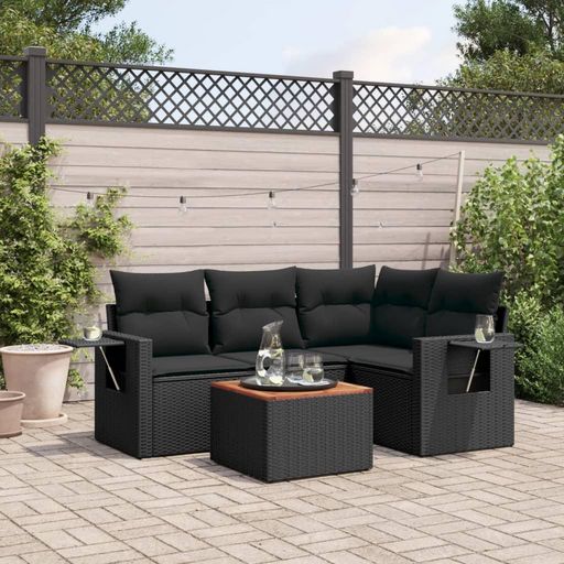 Salon de jardin 5 pcs avec coussins noir resine tressee