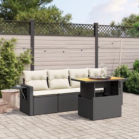 Salon de jardin 5 pcs avec coussins noir resine tressee