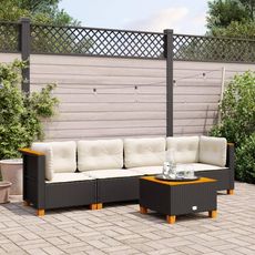 Salon de jardin 5 pcs avec coussins noir resine tressee