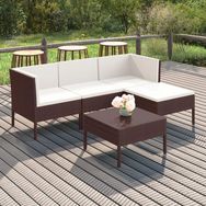 Salon de jardin 5 pcs avec coussins resine tressee marron