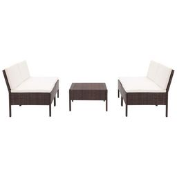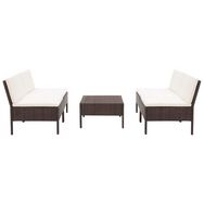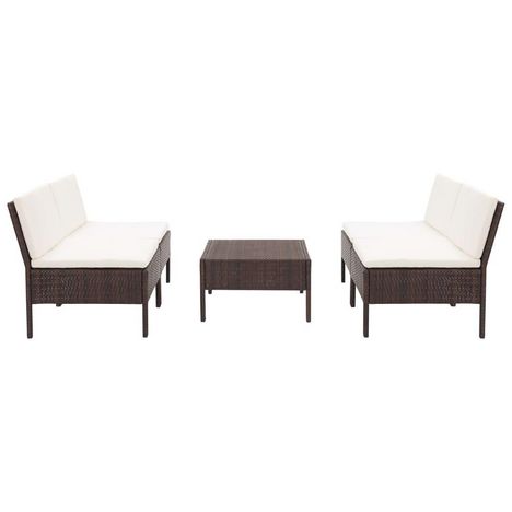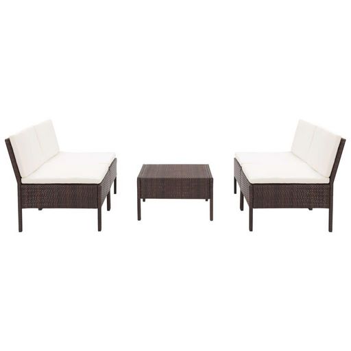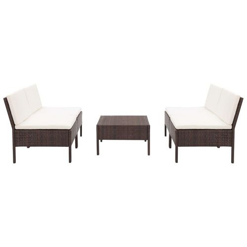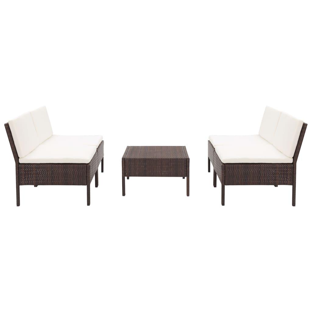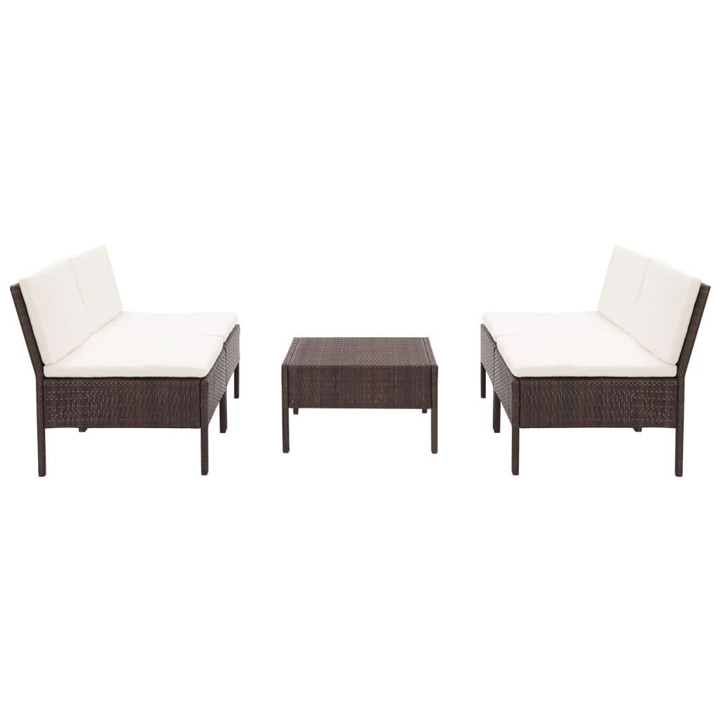 Salon de jardin 5 pcs avec coussins Resine tressee Marron