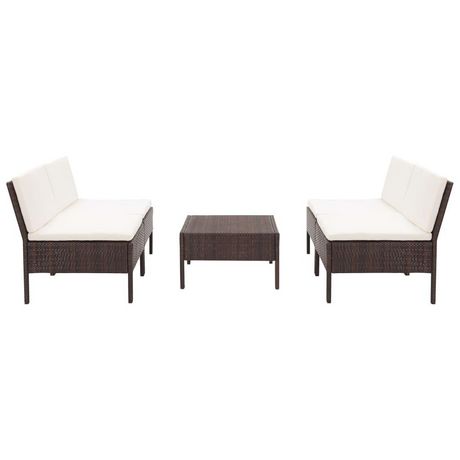 L'ensemble est livre avec 5 pieces afin que vous puissiez choisir differentes dispositions et combinaisons selon vos preferences. Construit a partir de resine tressee durable sur un cadre en acier enduit de poudre, cet ensemble est durable, robuste et resistant aux intemperies. Grace a la resine tressee toutes saisons, le salon de jardin est facile a nettoyer, resistant a l'usure et adapte a un usage quotidien. Les coussins epaississement rembourres et les sieges modernes extra profonds vous feront revenir pour plonger dans la detente. De plus, grace a sa conception legere et modulaire, vous pouvez deplacer cet ensemble de salon de jardin dans votre maison avec une grande facilite.