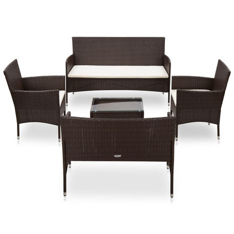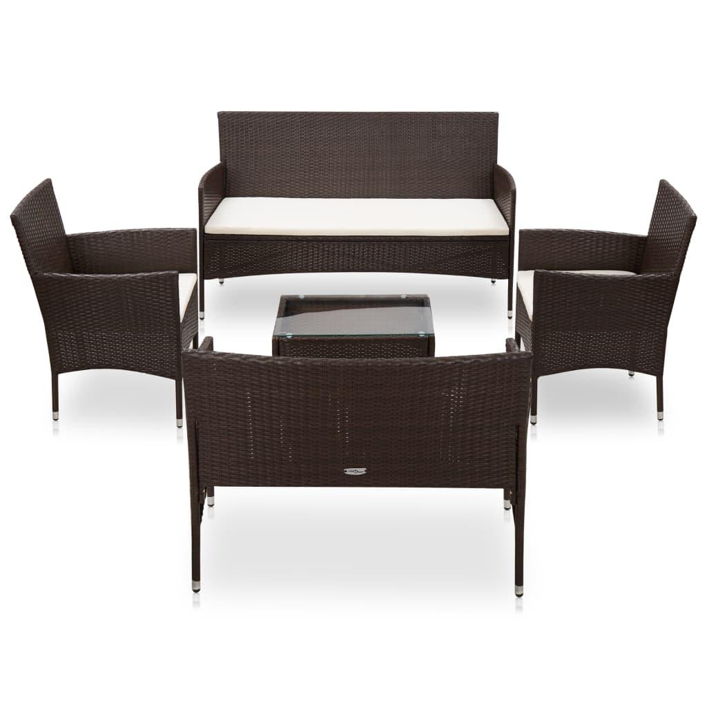 Salon de jardin 5 pcs avec coussins Resine tressee Marron