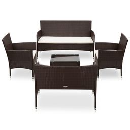 Fabrique en resine tressee resistante aux intemperies et impermeable, l'ensemble est facile a nettoyer, resistant a l'usure et adapte a un usage quotidien. Le cadre en acier enduit de poudre rend l'ensemble tres robuste et durable. Grace a sa construction legere, il est facile a deplacer. Cet ensemble est livre avec des coussins d'assise bien rembourres tres confortables. Les housses de coussin sont amovibles et lavables. De plus, cet ensemble est facile a assembler.