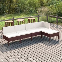 Salon de jardin 5 pcs avec coussins resine tressee marron